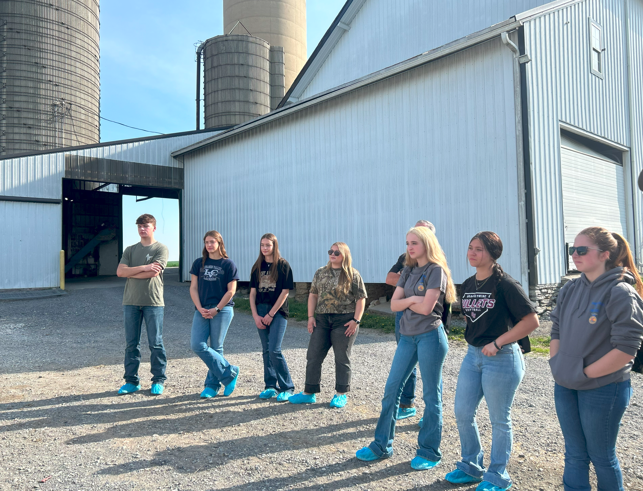 On Thursday, October 17, 2024, 68 students and 6 educators spent the day experiencing dairy farms and careers. Offered in-person, participants toured Penn England Farms and Ritchey’s Dairy in Blair County, PA. They learned about the careers of dairy producer, veterinarian, hoof trimmer, milking equipment sales, calf feeder, ag equipment technician, and dairy processor.